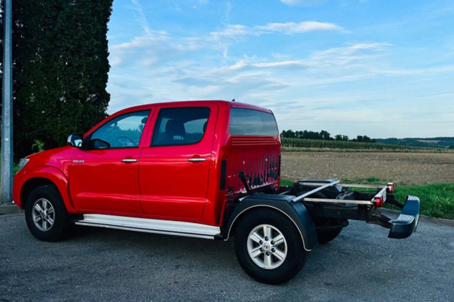 Kluczowym założeniem było całkowite usunięcie fabrycznej skrzyni ładunkowej pick-upa. W ten sposób pozbyliśmy się zbędnych ścian, nadkoli i przegród, które ograniczają przestrzeń użytkową. Nasza autorska zabudowa pozwala wykorzystać pełen obrys pojazdu – podłoga o powierzchni 180 × 190 cm daje ogromne możliwości aranżacyjne. Jednocześnie całość zachowuje niezmienioną geometrię terenową, więc pojazd wciąż świetnie radzi sobie w wymagającym terenie.